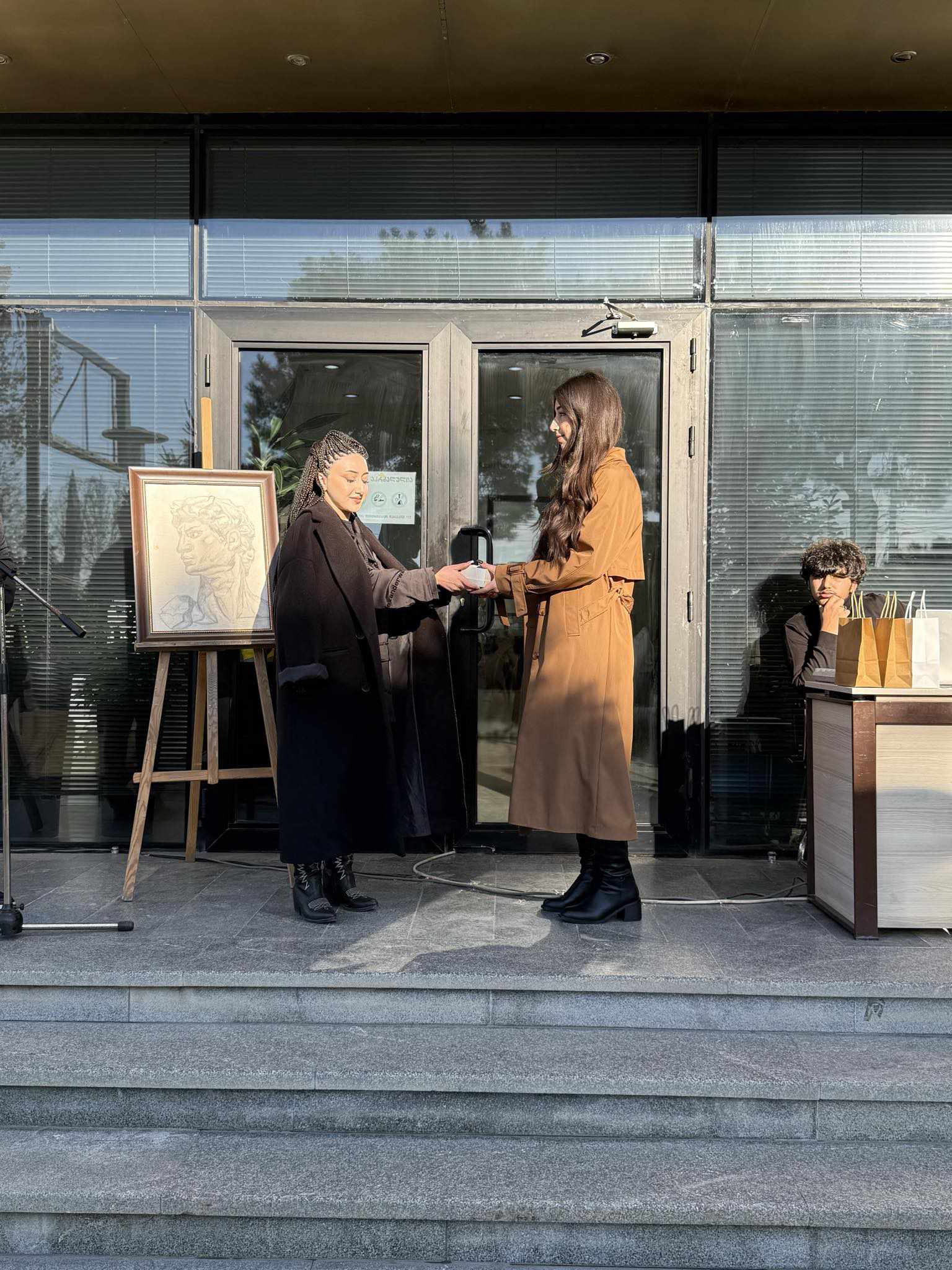 On November 29, 2024, an open-air exhibition of the members of the drawing course "Harmony of Black and White" was held at the "Tea House".